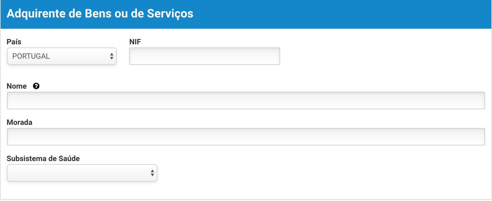 Este campo só se aplica a prestações de serviços de saúde, nos casos em que o teu cliente seja um particular, pelo que se for o caso terás de referenciar o número e respetivo subsistema de saúde do cliente.