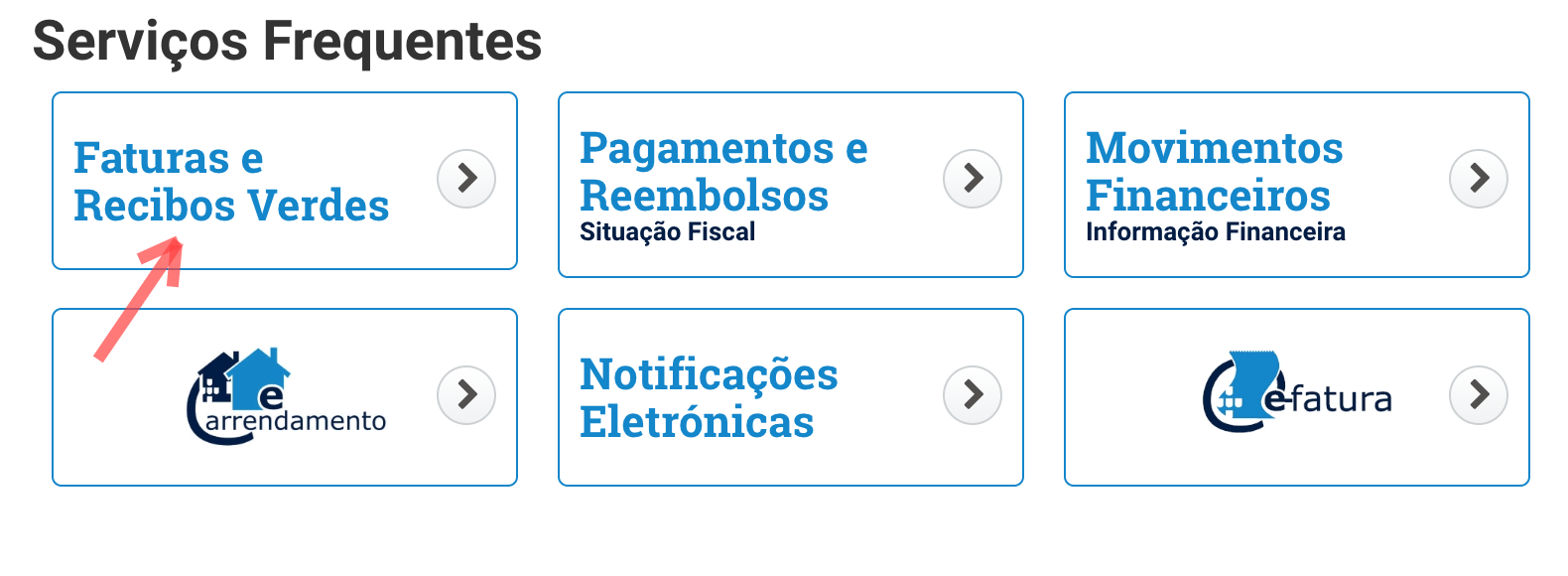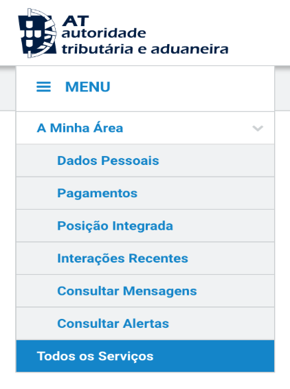 ou no fundo da homepage em "Serviços Frequentes"