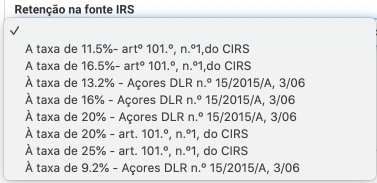 "Retenção na fonte IRS"25% se for alguma