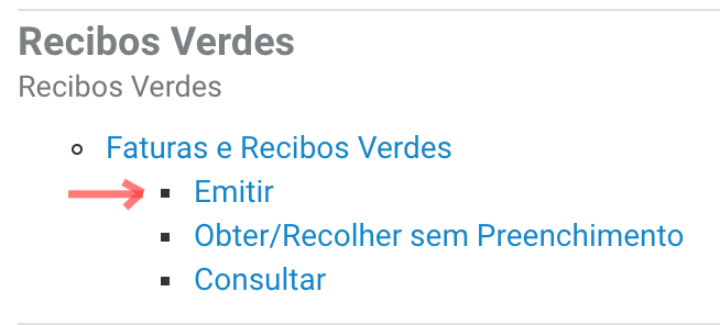 procura por "Faturas e Recibos Verdes" e clica em "Emitir":