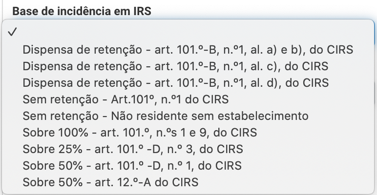 "Base de incidência em IRS"